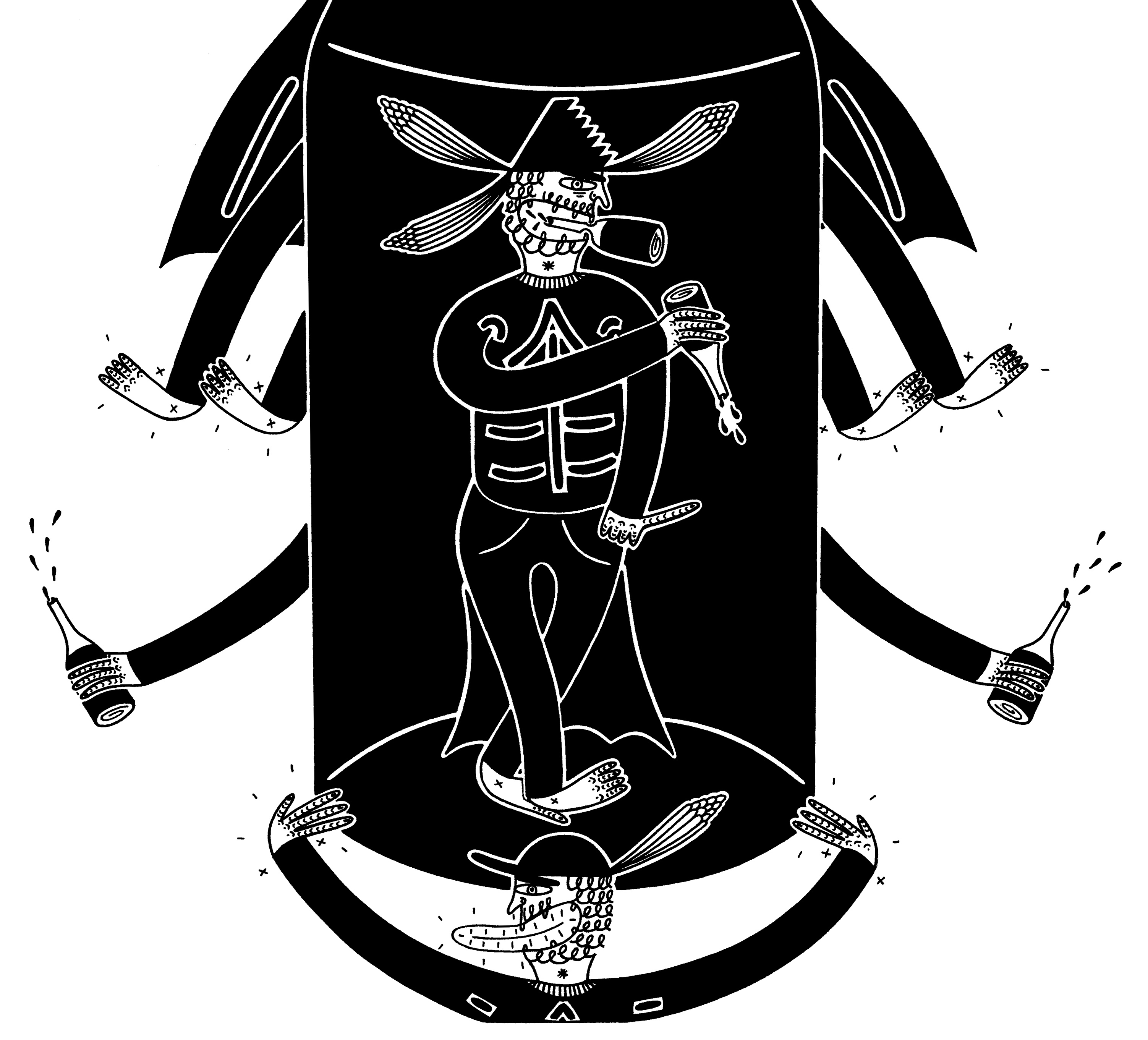 Sharpie and fine-liner on 300gsm Canford card - (29.7 x 42cm) Inspired by what it would be like stuck drinking inside a bottle