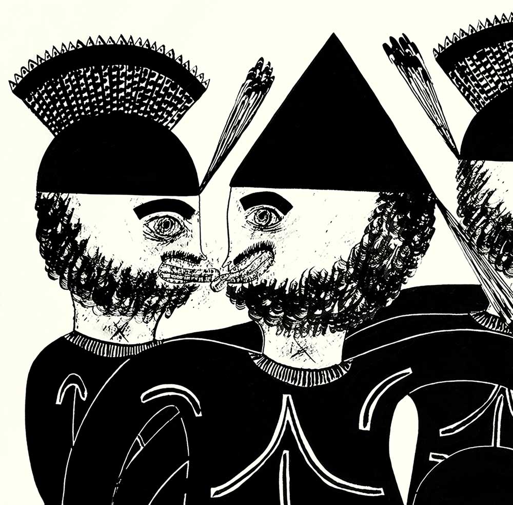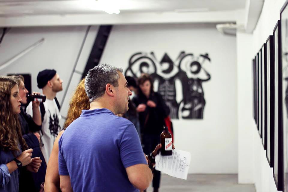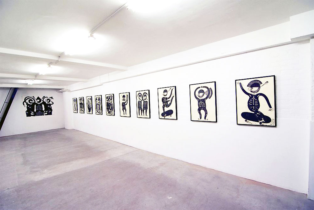 First solo exhibition in 2013 at Atomica Gallery in Soho central London. Consisting of over seventeen signature 'Bromance' style A1 paintings. Made over a two year period using only Indian ink and a brush. "Combining themes from both native and contemporary popular culture, Jack interprets traditional ideas of brotherhood within a modern context. Bromance depicts ‘dudes having a good time'. His exploration of male relationships and rituals revolves around playful characters hanging out, skateboarding and drinking beers"
