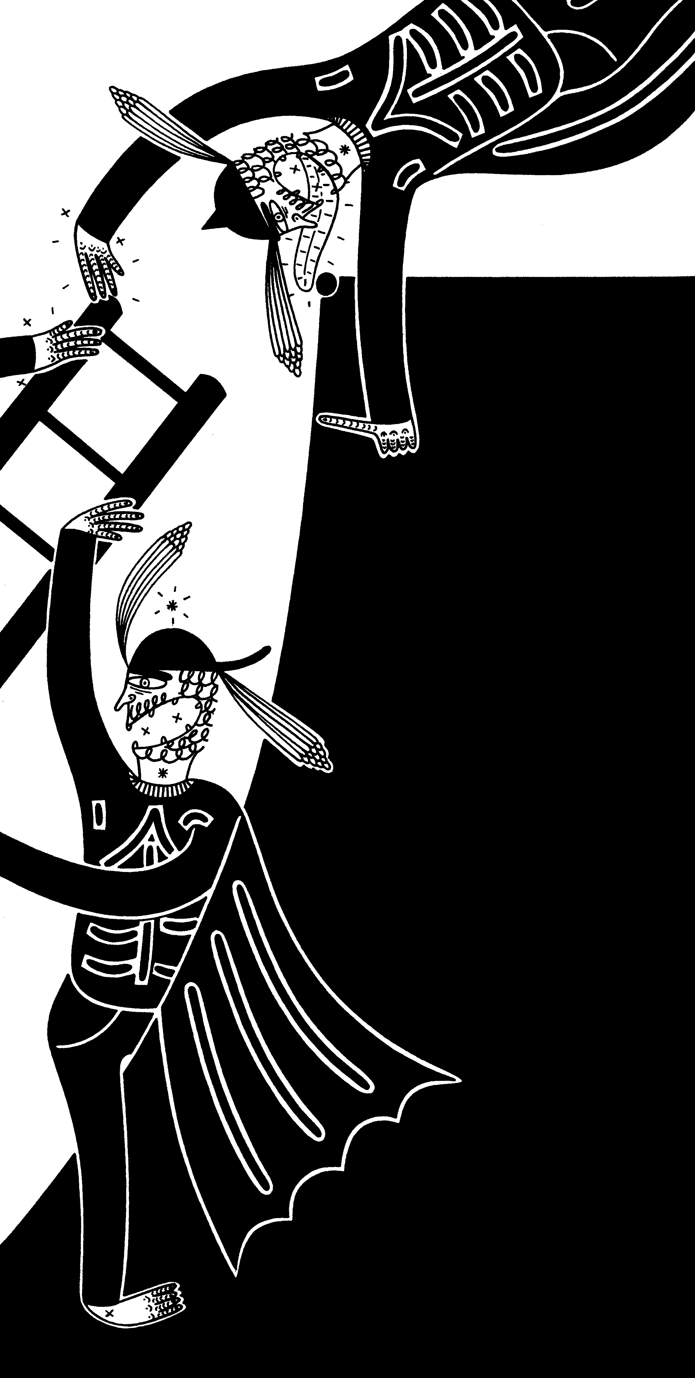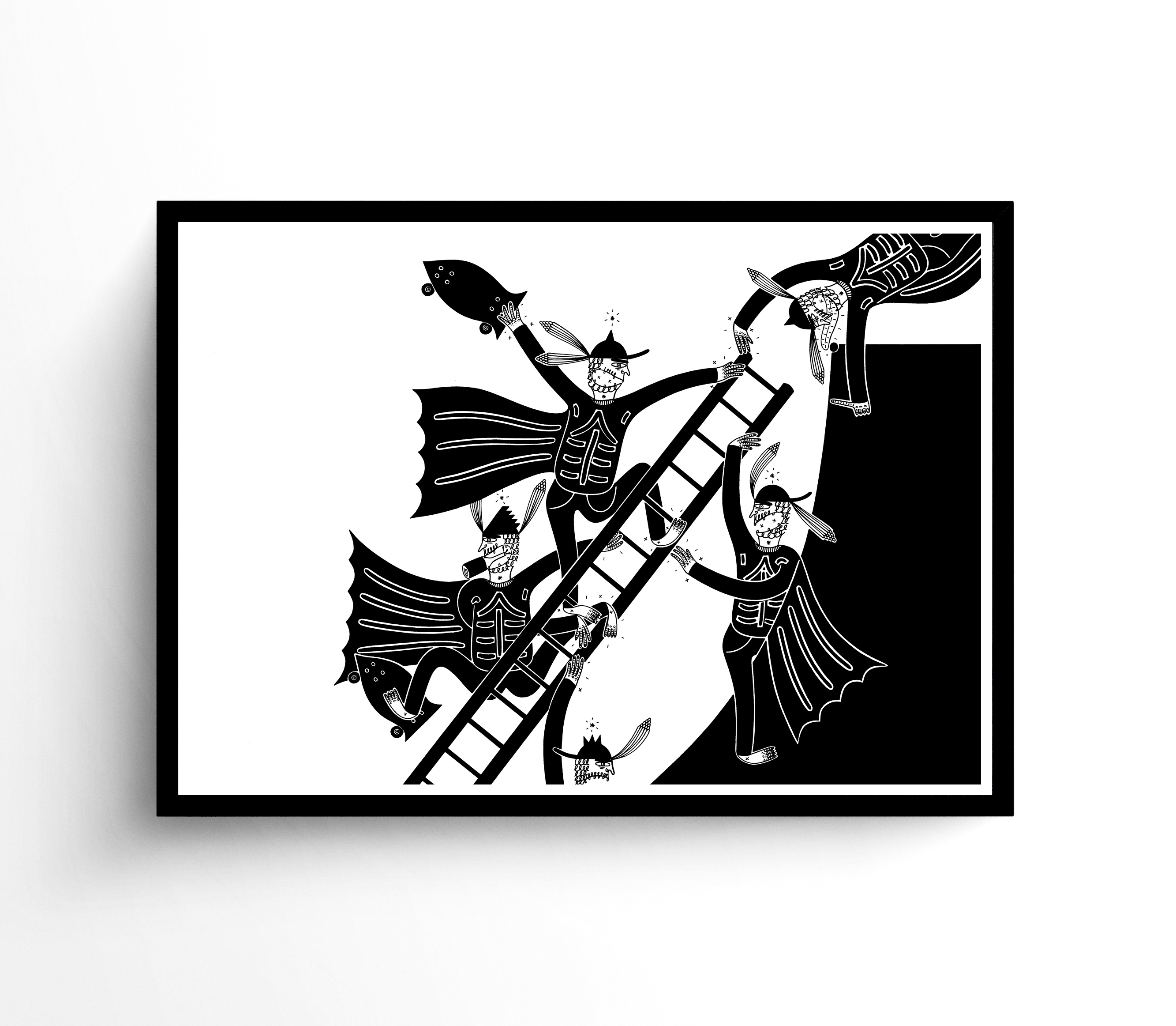 Sharpie and fine-liner on eggshell white 285gsm - (29.7 x 42cm) Inspired by some Bro's a ladder a ramp & some moderate intoxication