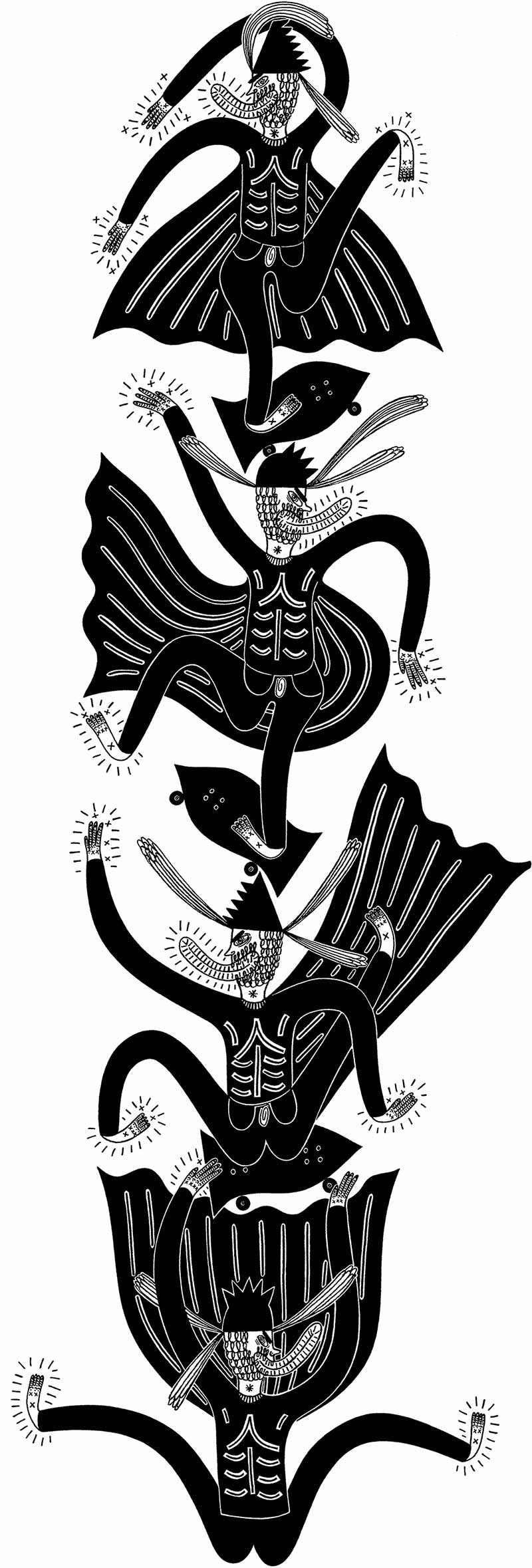 A collaboration with Californian based skateboard brand, Shakastics. Shaka makes radical, 70's style sidewalk surfer decks and other unique shaped boards. The idea behind my artwork for this deck was taken from the 'sidewalk surfing' phrase, but I replaced the surfing for flying. 'Sidewalk Flyer' complete design was drawn by hand and screen printed onto solid oak. Complete dimensions - 24 x 6.5"