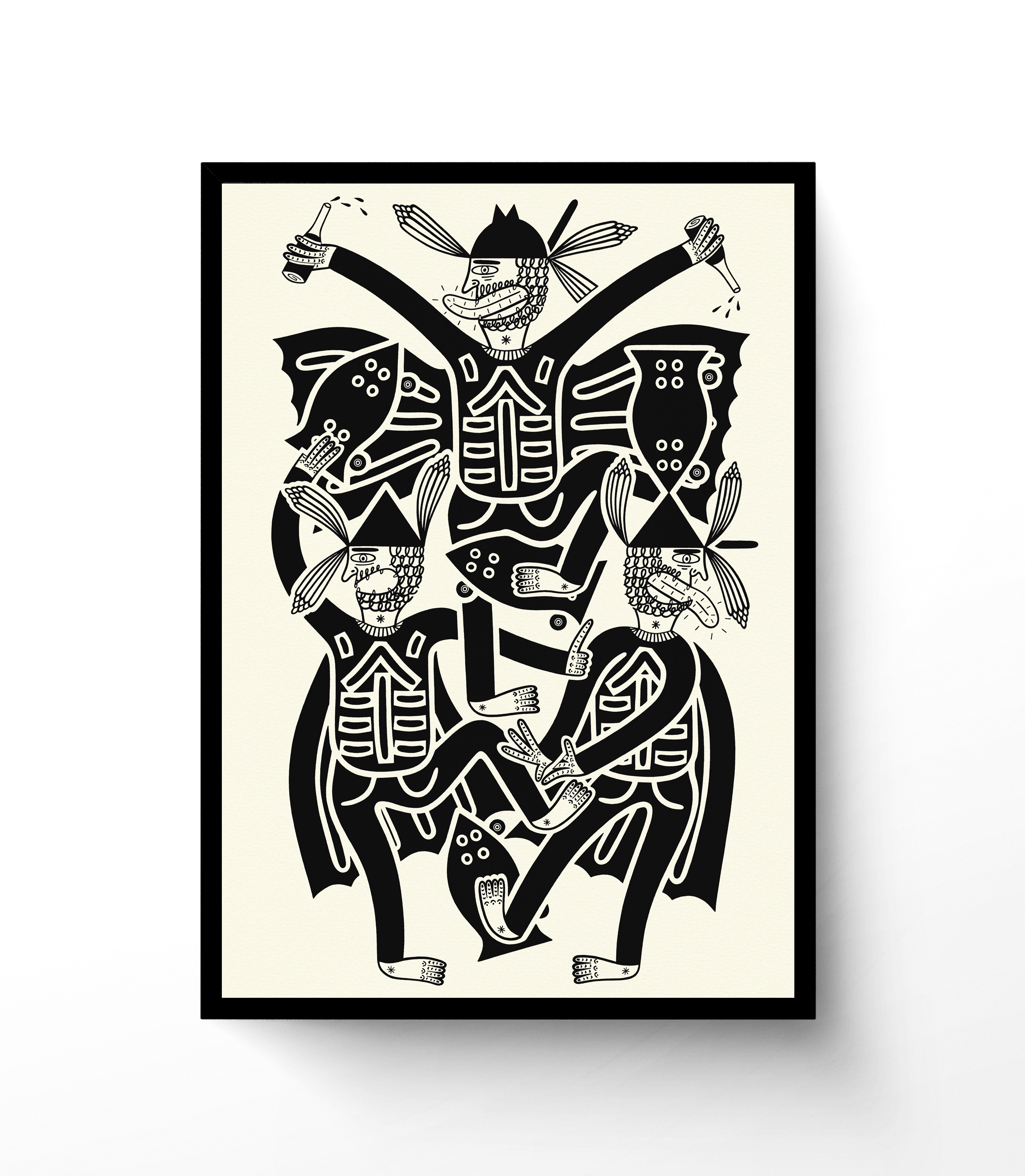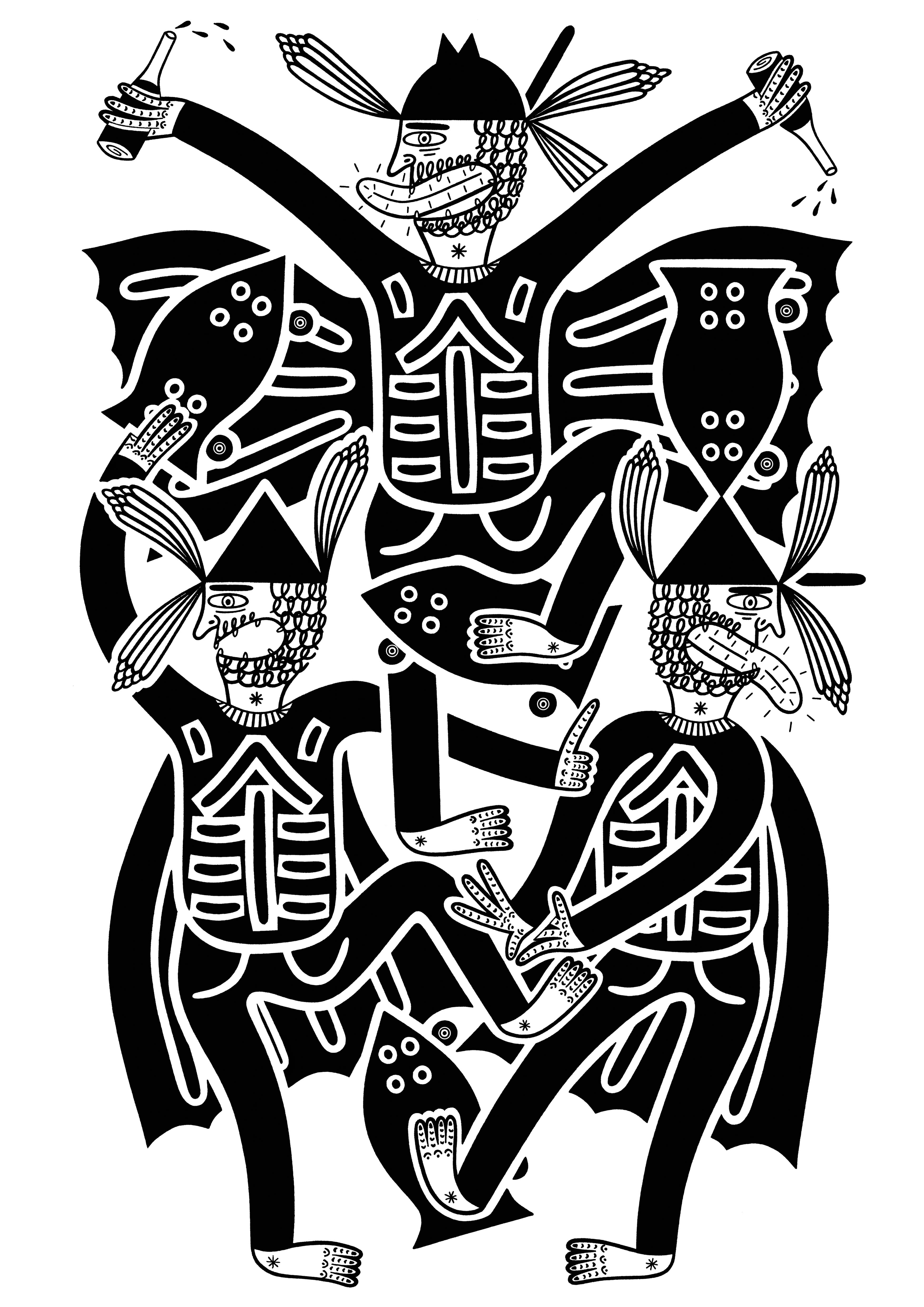 From a series titled ‘Ramp Tramps’ Sharpie and fine-liner on 300gsm Canford card - (29.7 x 42 cm) Inspired by a trifecta of symmetrical coincidences and a three-way Bromance